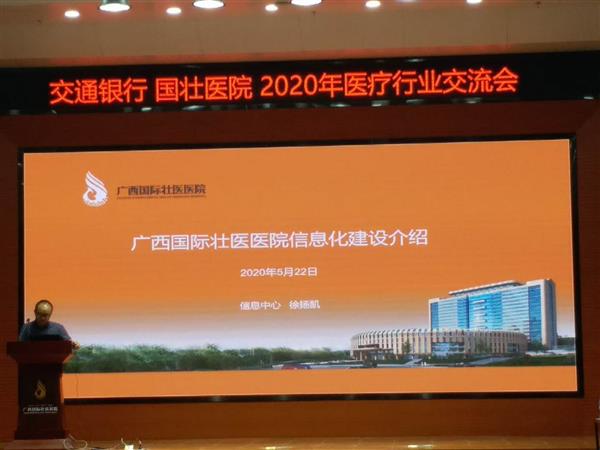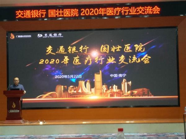 5月22日,为搭建自治区医疗机构信息化建设沟通平台,全面推进“银卫安康”交流合作,同时全力支持疫情防控,广西贝瀚科技有限公司、交通银行广西区分行、广西国际壮医联合举办了2020年医疗行业交流会。交通银行广西区分行副行长欧维奇、广西国际壮医医院相关领导出席交流会并讲话,自治区相关医疗机构代表,交通银行总行资深行业服务专家、广西区分行相关单位代表参加会议。